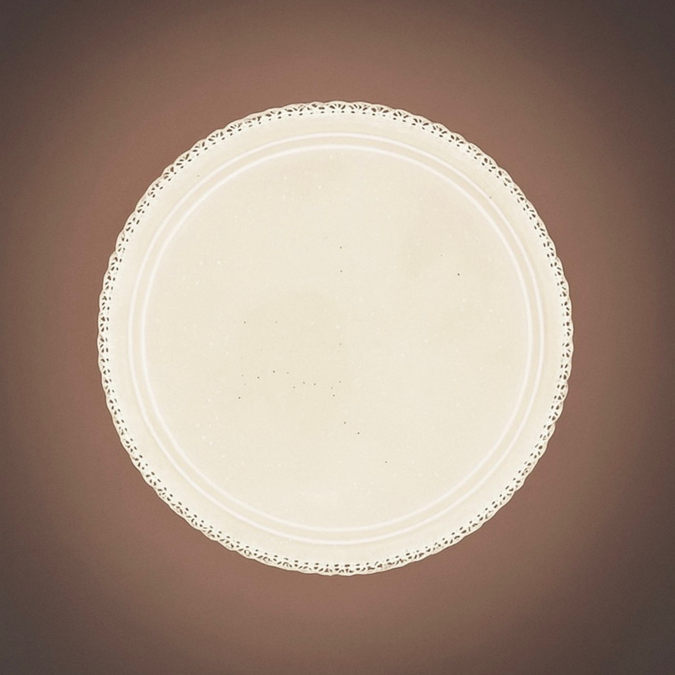 De subtiele kristalrand en het zachte, egale licht zorgen voor een warme sfeer in elke kamer.